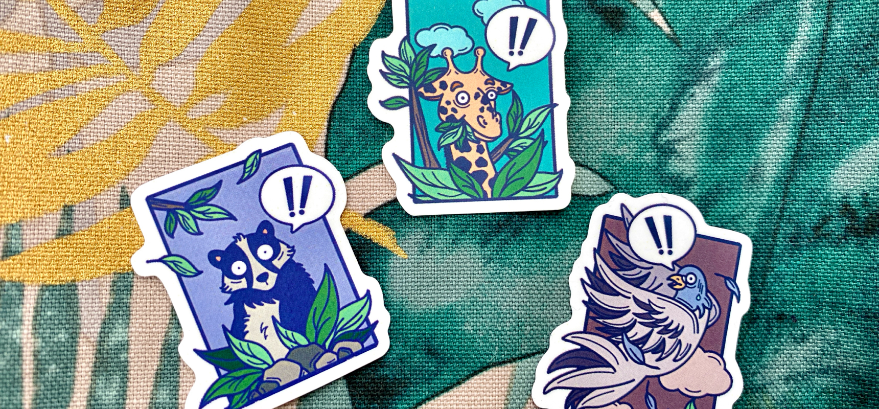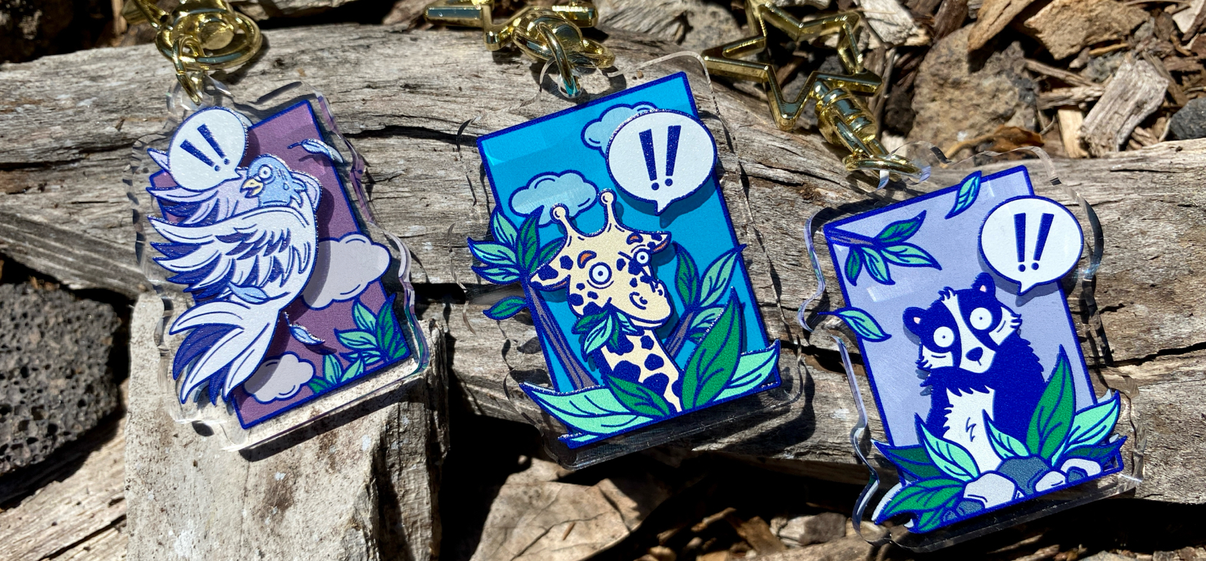 These were created into different types of products, from stickers, to pins, to keychains. I also designed the packaging behind them. I wanted the backing cards and other packaging to be clean and simple, so as to highlight the illustrations more.