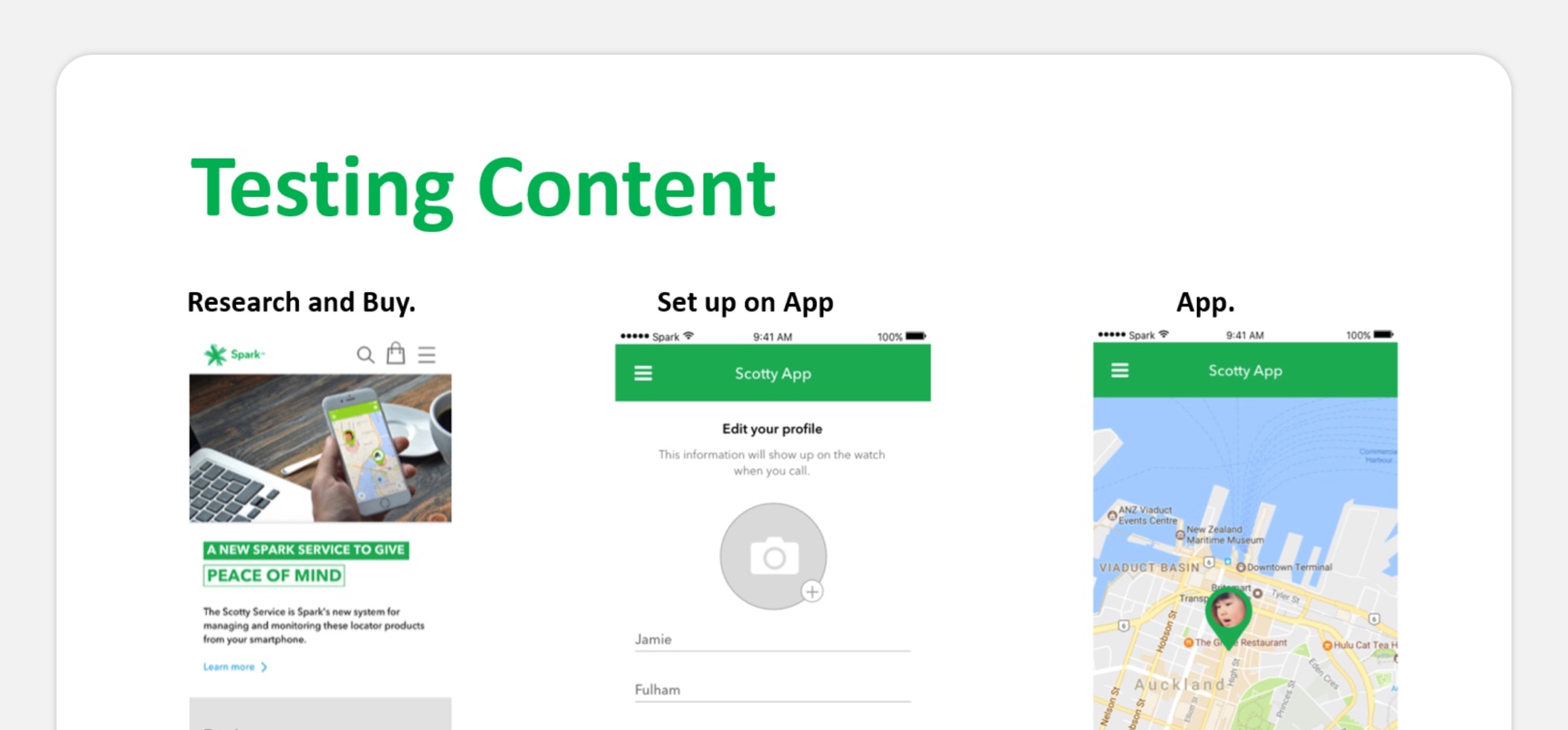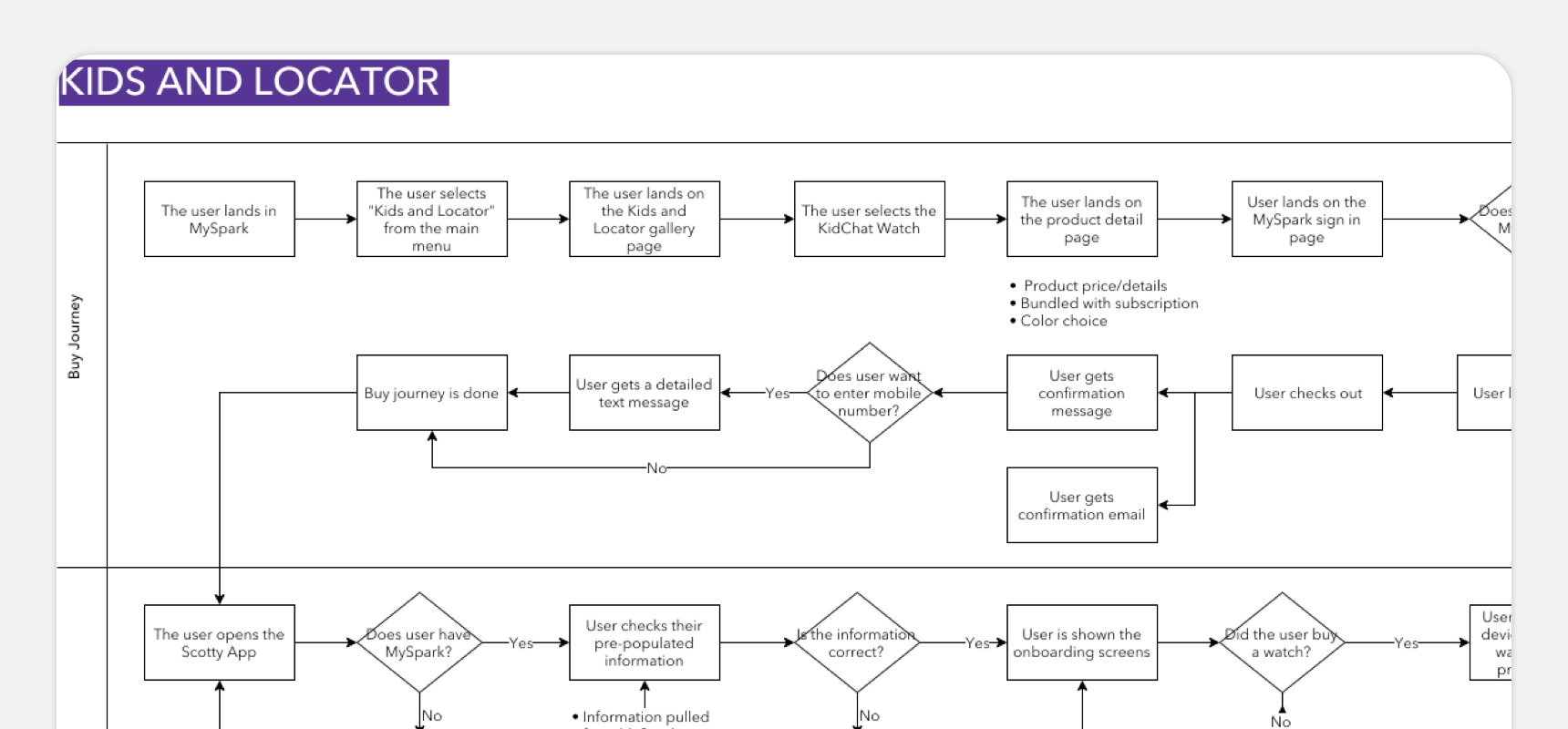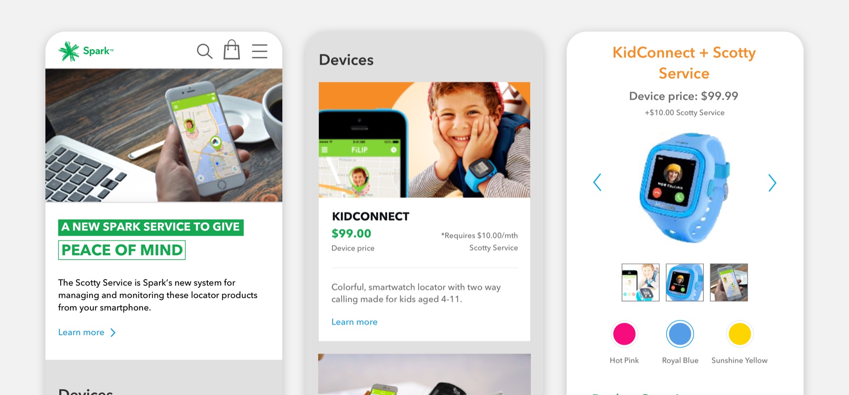 Spark looked at introducing a kid tracker smartwatch specifically aimed at these users. This meant creating an online journey for users to research, buy, and setup this watch. It would also have to consider the post-purchase journeys such as using and monitoring, all the way to help and fix.