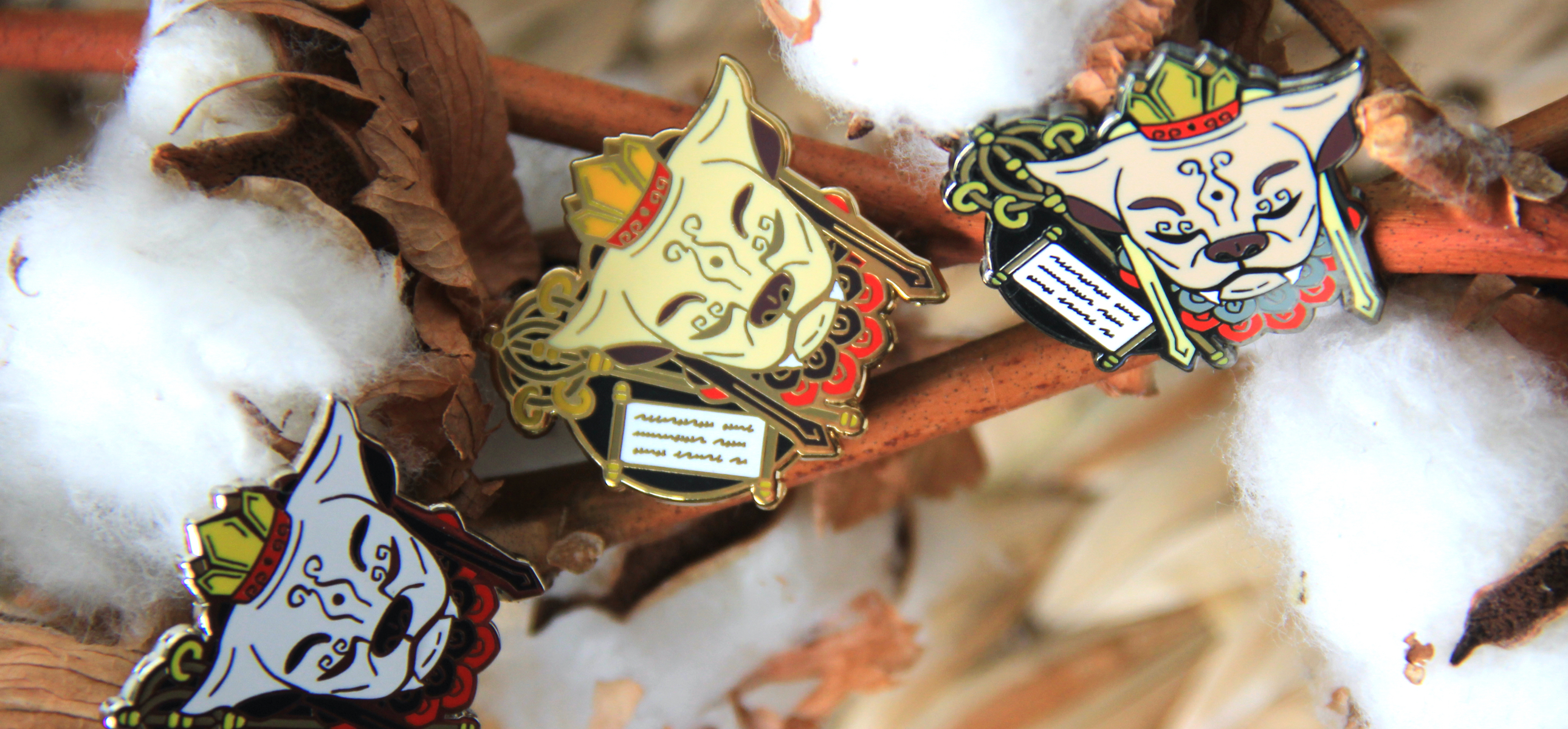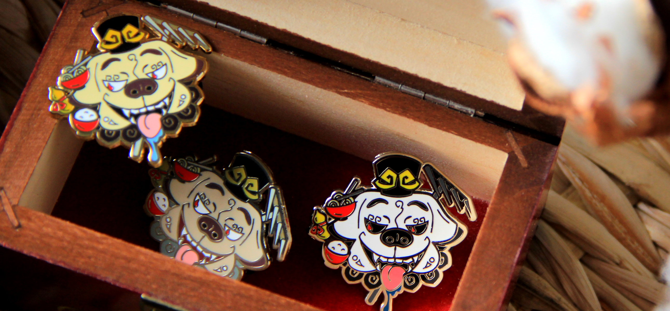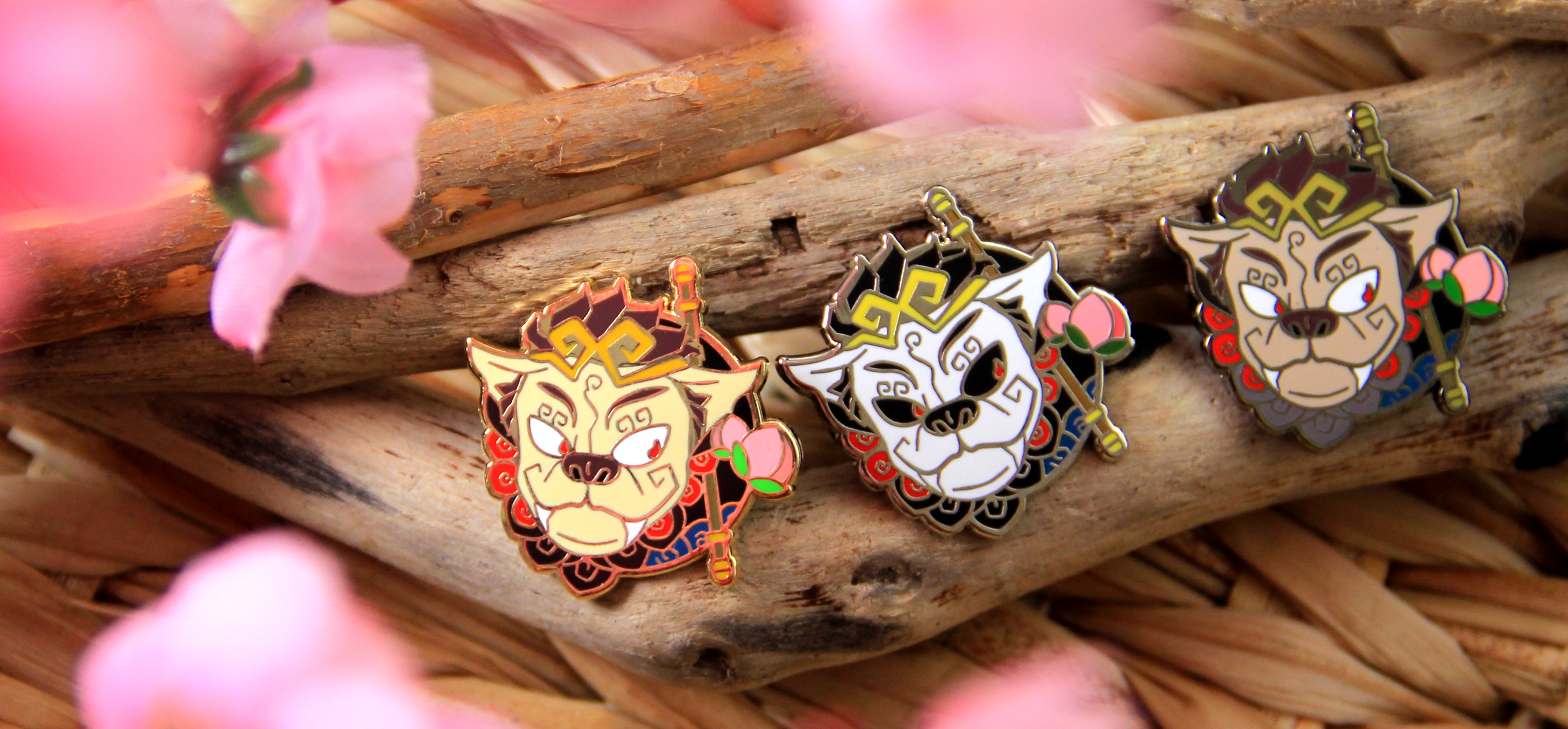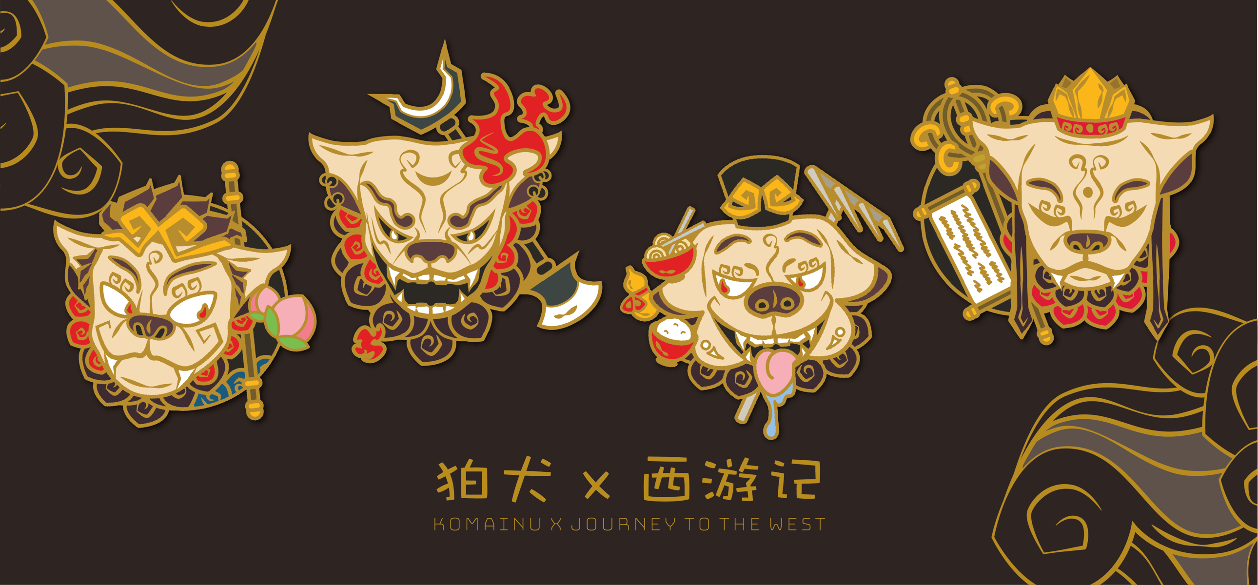 Journey to the West is one of the four big classics in Chinese literature. It depicts a monk and his three disciples' journey to the west to spread Buddhist scriptures. In designing these pins, I decided to put a twist on them and design them as Komainu, which are Japanese temple guardian dogs.