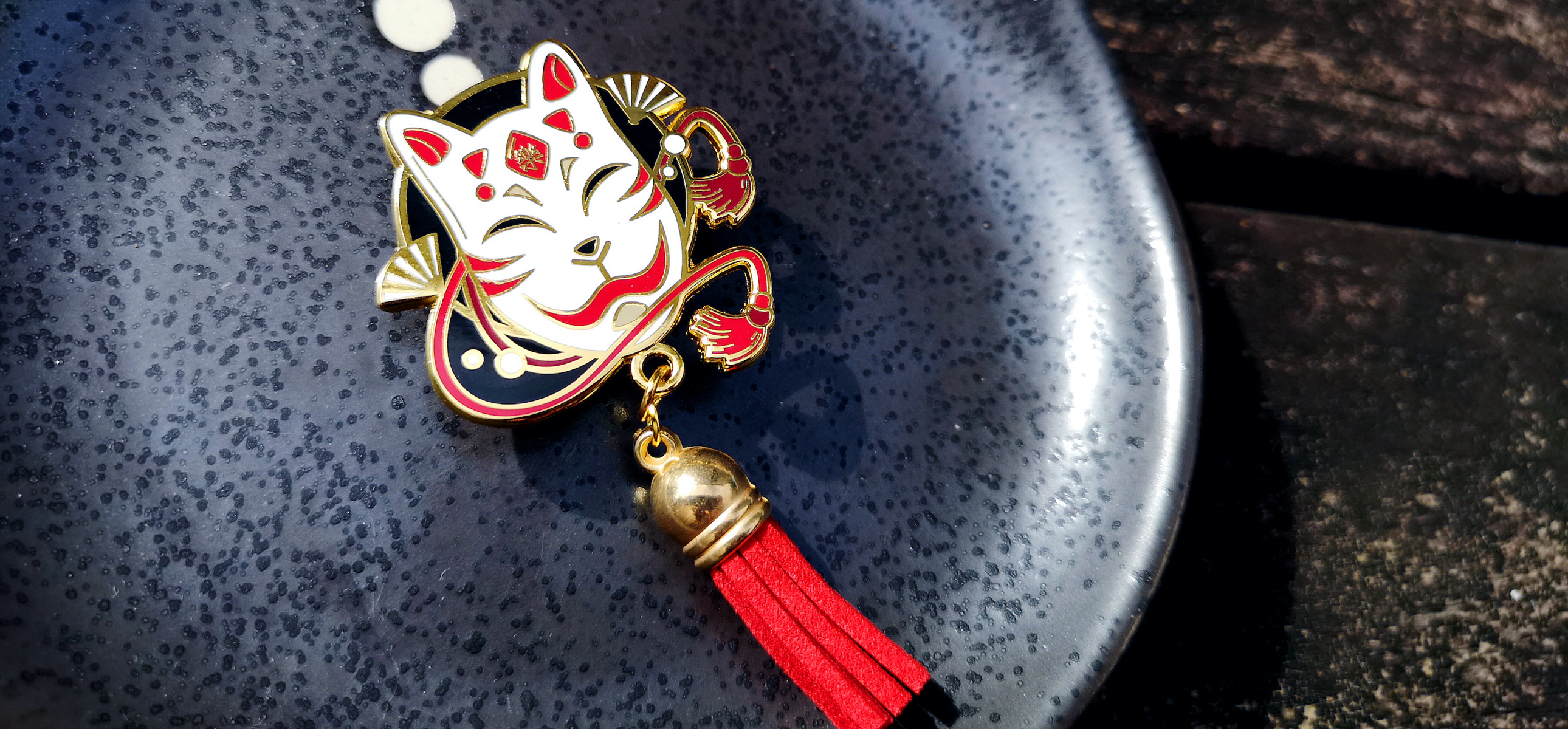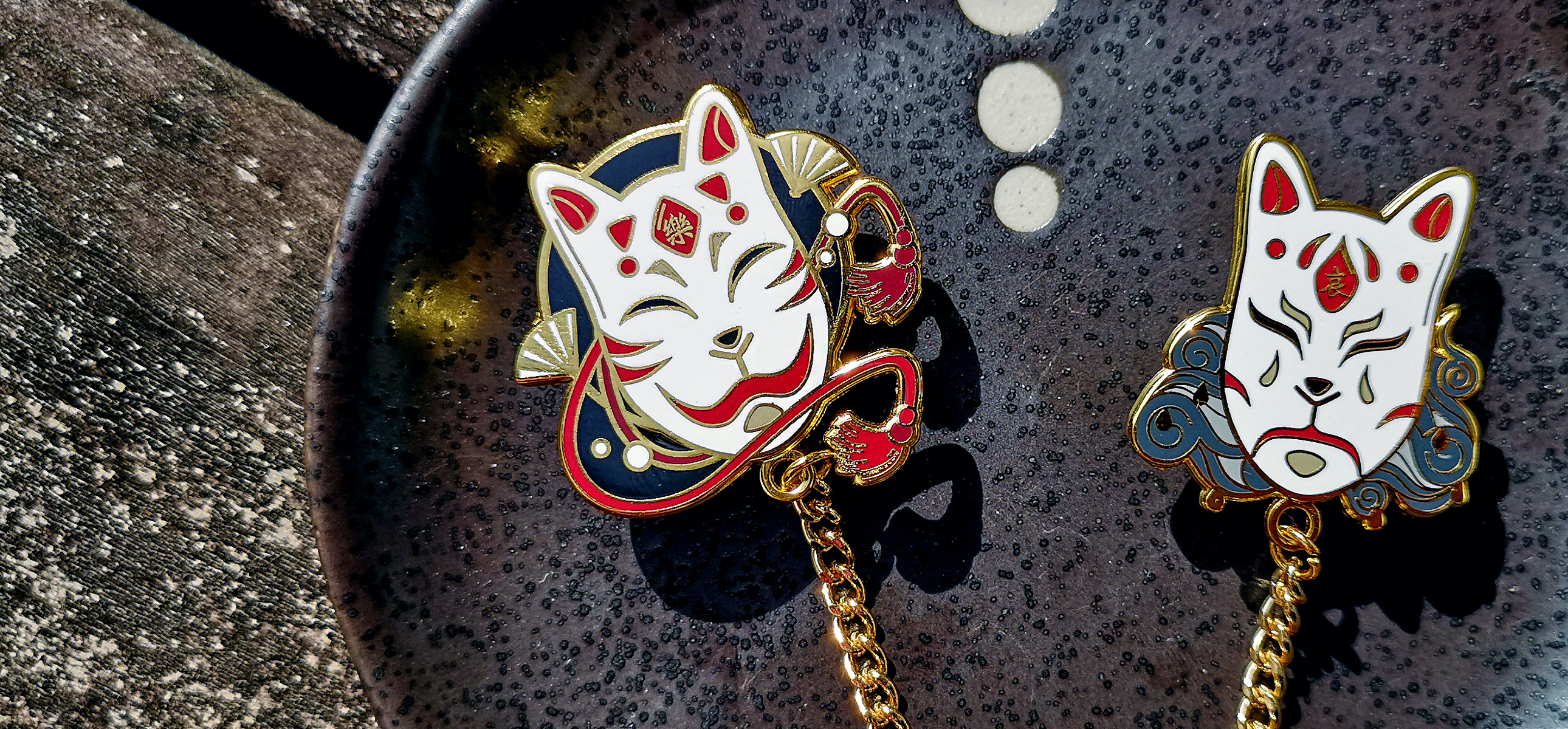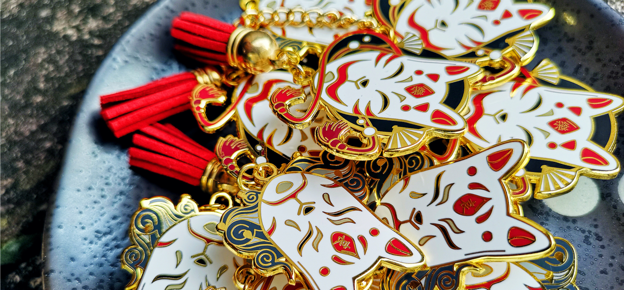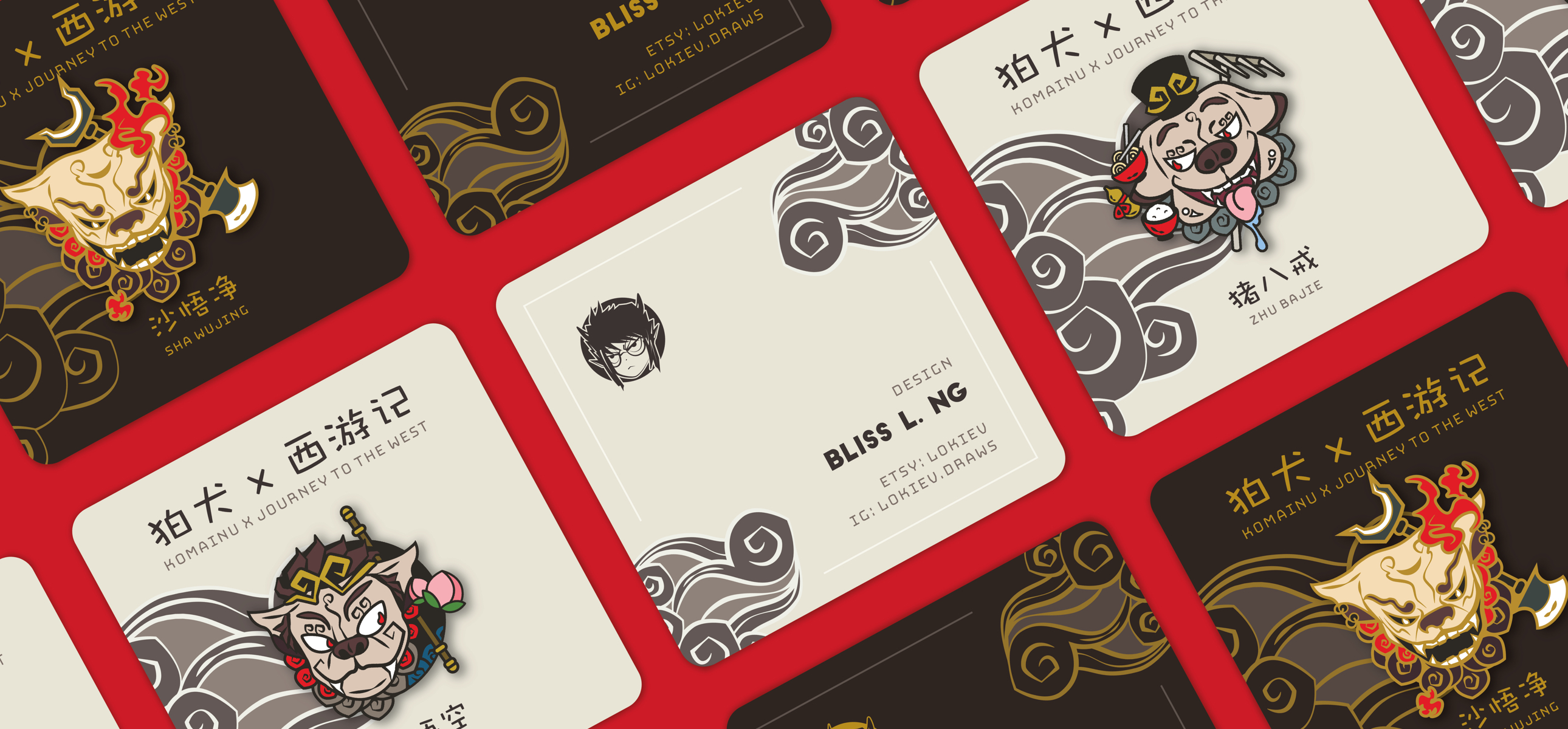 Journey to the West is one of the four big classics in Chinese literature. It depicts a monk and his three disciples' journey to the west to spread Buddhist scriptures. In designing these pins, I decided to put a twist on them and design them as Komainu, which are Japanese temple guardian dogs.