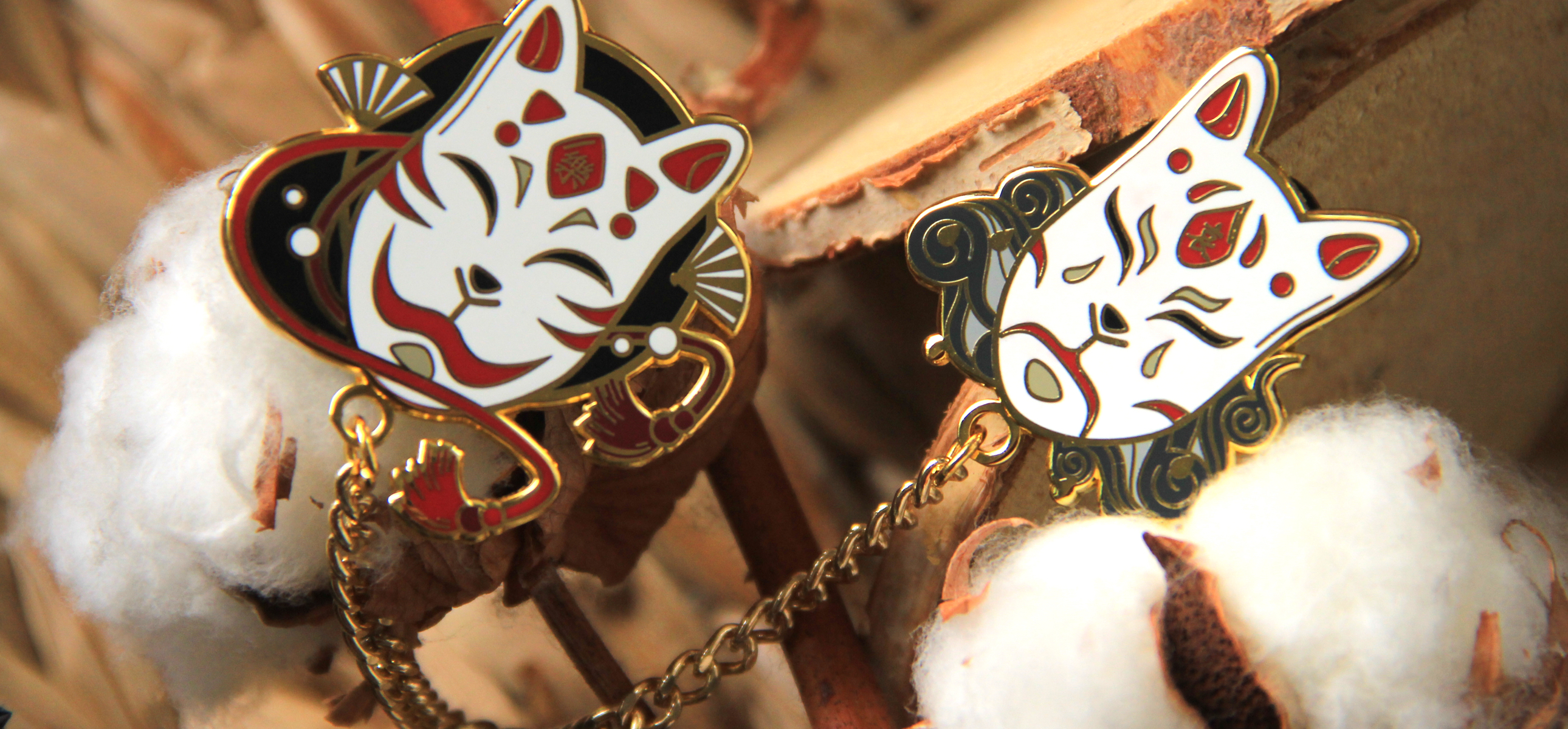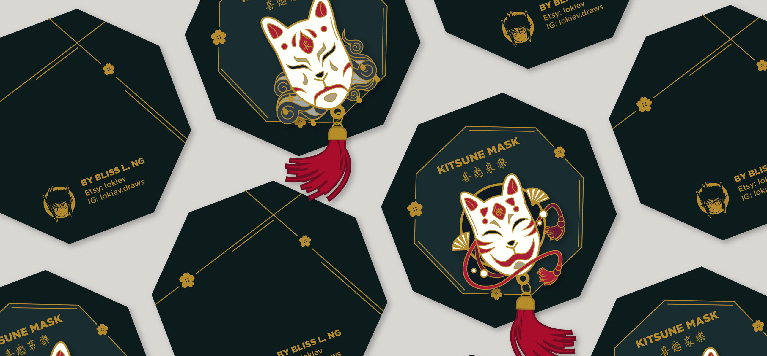 Having an interest in illustrations and accessories, I wanted to create enamels pins that would reflect and fuse Asian cultures in my designs. I designed these pins by sketching them first, and then doing the designs in Illustrator and sending them off to a manufacturer to get them made. These are currently available in my Etsy shop.