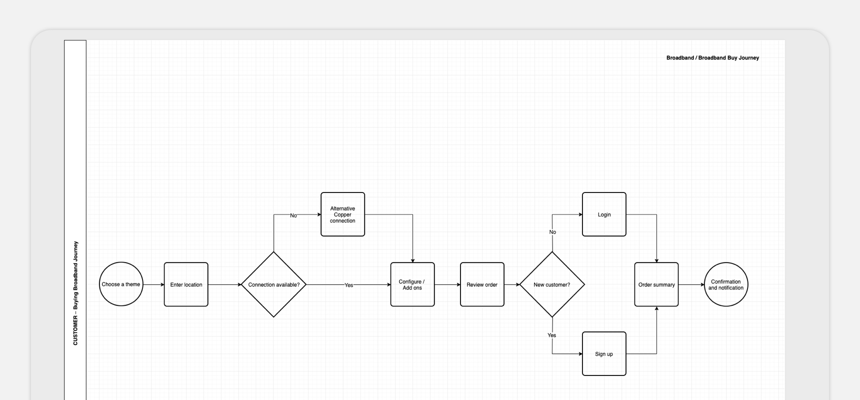 When developing a full E2E journey for the retail experience, the main goal was to have it as simple as possible, and as scalable and repeatable as possible. This was to take advantage of customer learning and expectations - once they had gone through a product journey once, the customer would now be familiar with the experience and be able to complete it with even less effort.