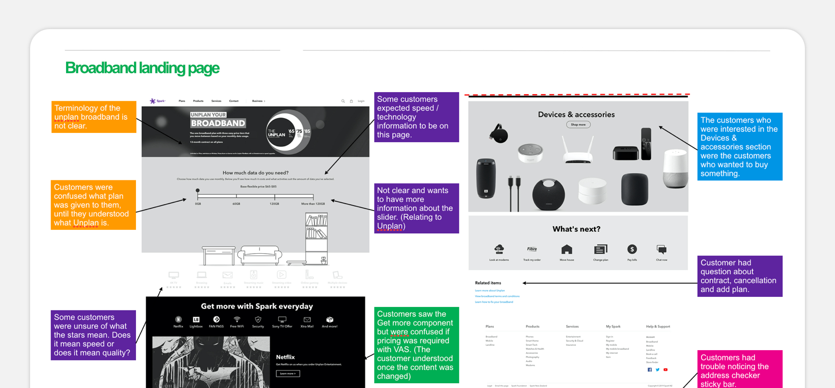 The aim of this project was to identify existing pain points with the then-current online retail journey, taking into consideration the unique points of our product propositions (broadband, landline, mobile, services, and devices).