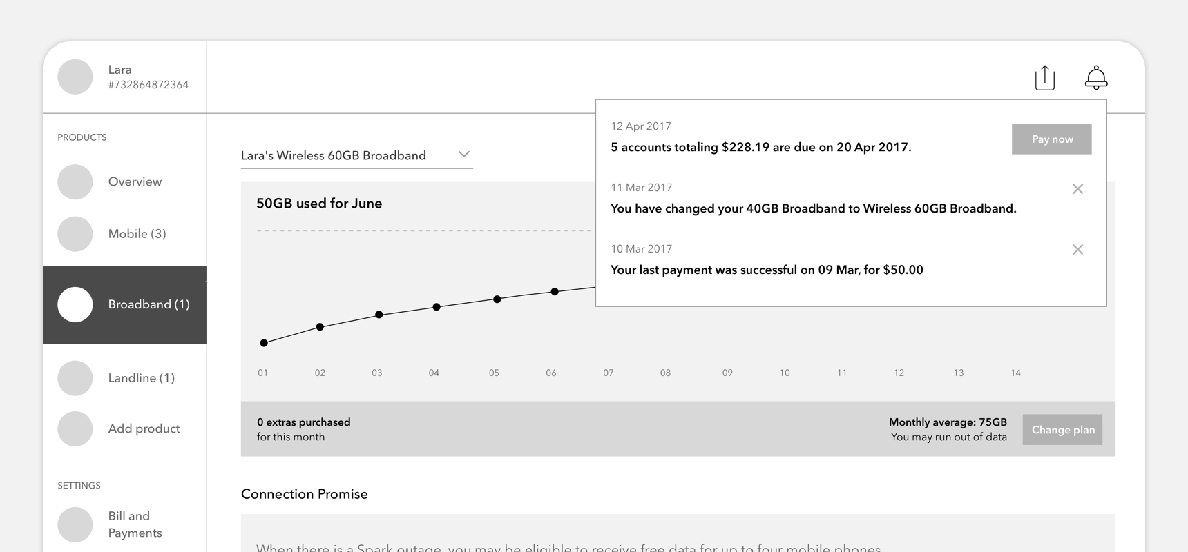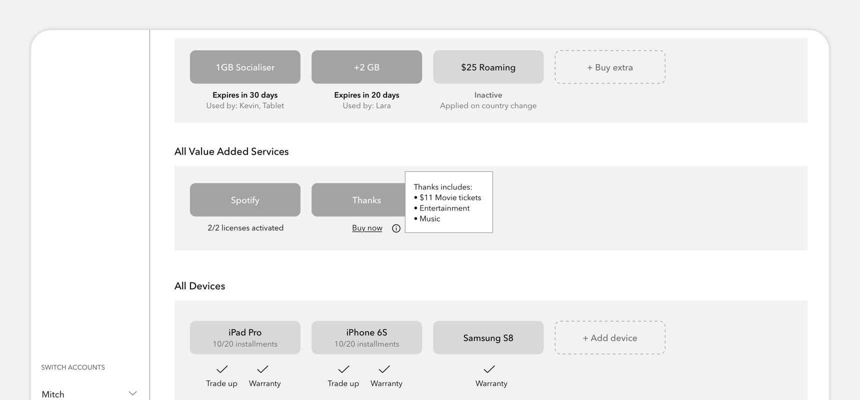 "As a customer with multiple Spark products, I want to view all the important product information easily, so that I can take appropriate actions where necessary."