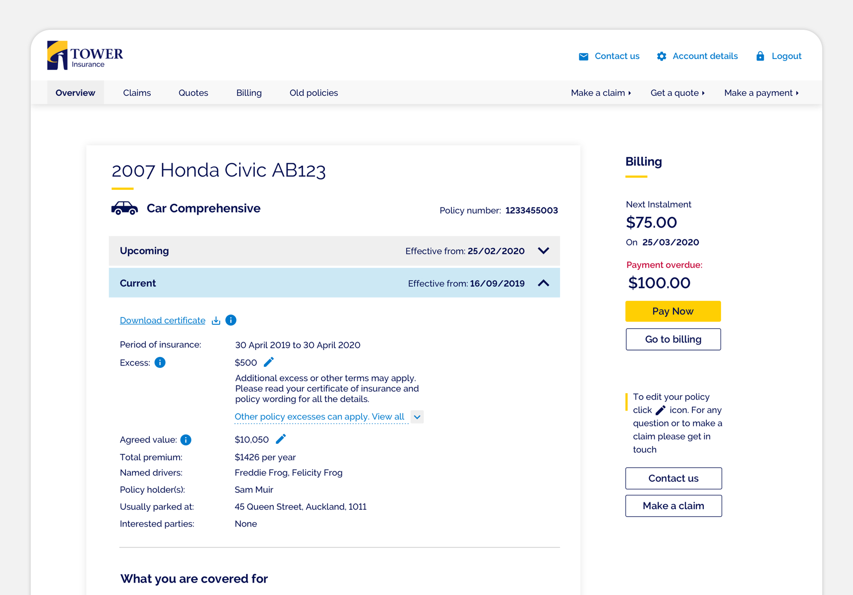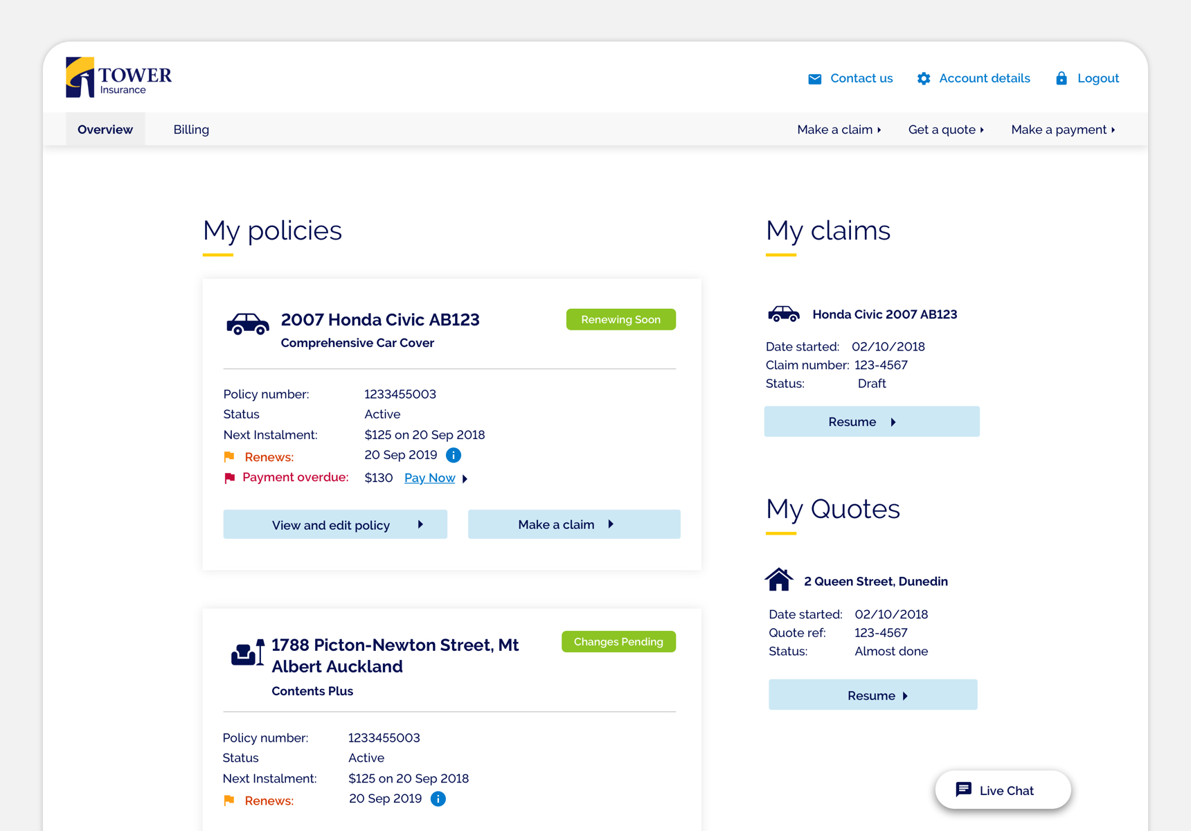 My Tower is a self service management portal for customers to be able to flexibly view and manage their policies. This would give more transparency and power into the hands of the customer. From a business point of view, this was a great opportunity, and there weren't many insurance companies in the market that offered a fully capable management portal.
